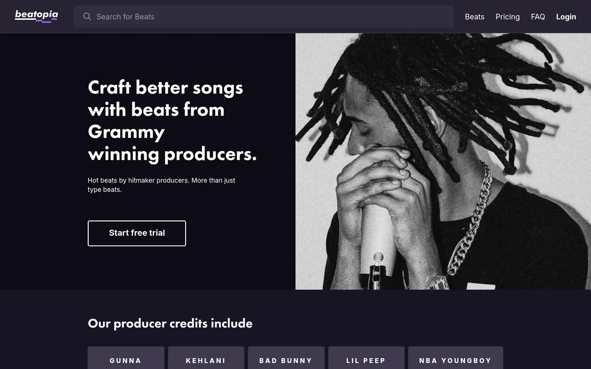 Beatopia offers a subscription for downloading high-quality beats created by top producers.