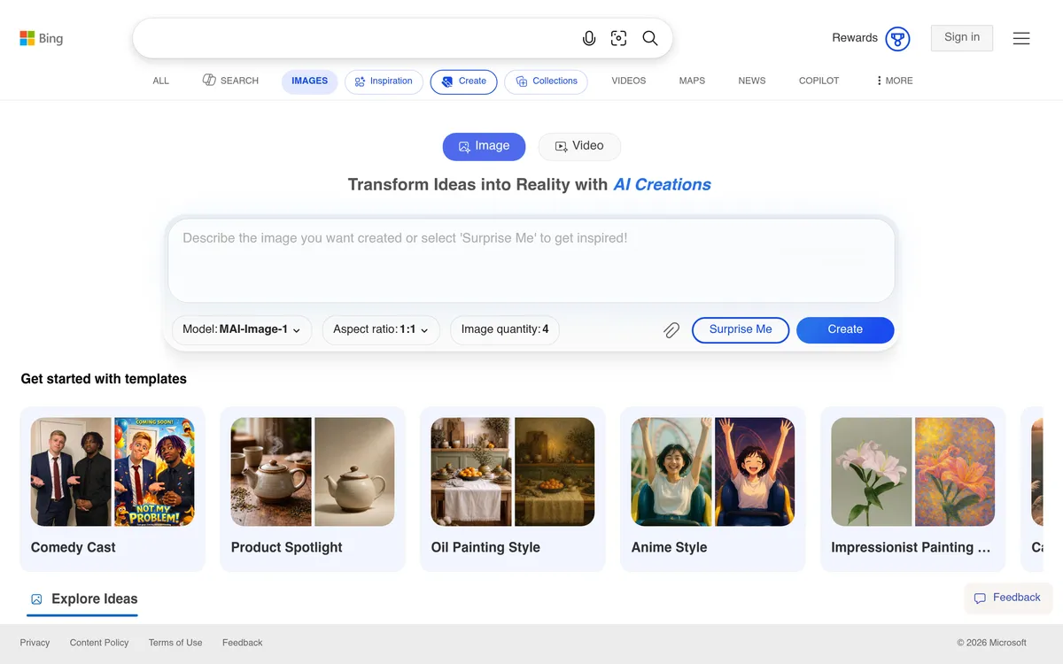 Bing Image Creator allows users to transform their ideas into visual content using advanced AI technology. It offers functions to enhance, remix, or reimagine images based on user-provided inputs. Users can upload images and utilize tools for image processing, making it suitable for creative projects. The service aims to improve image processing through user contributions, always emphasizing privacy. This platform provides templates and editing tools to assist users in creating unique visual content efficiently.