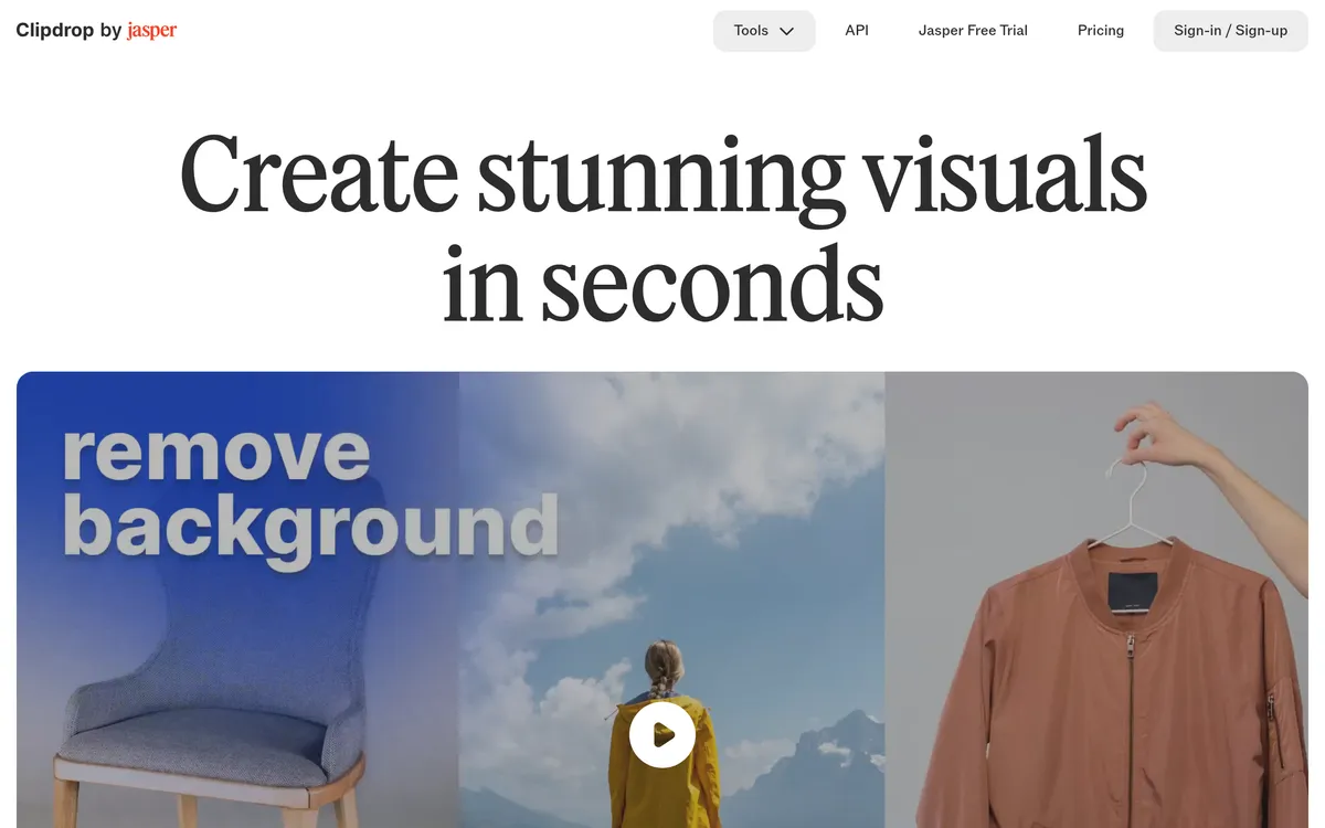 Clipdrop allows users to create stunning visuals utilizing various AI tools in seconds.
