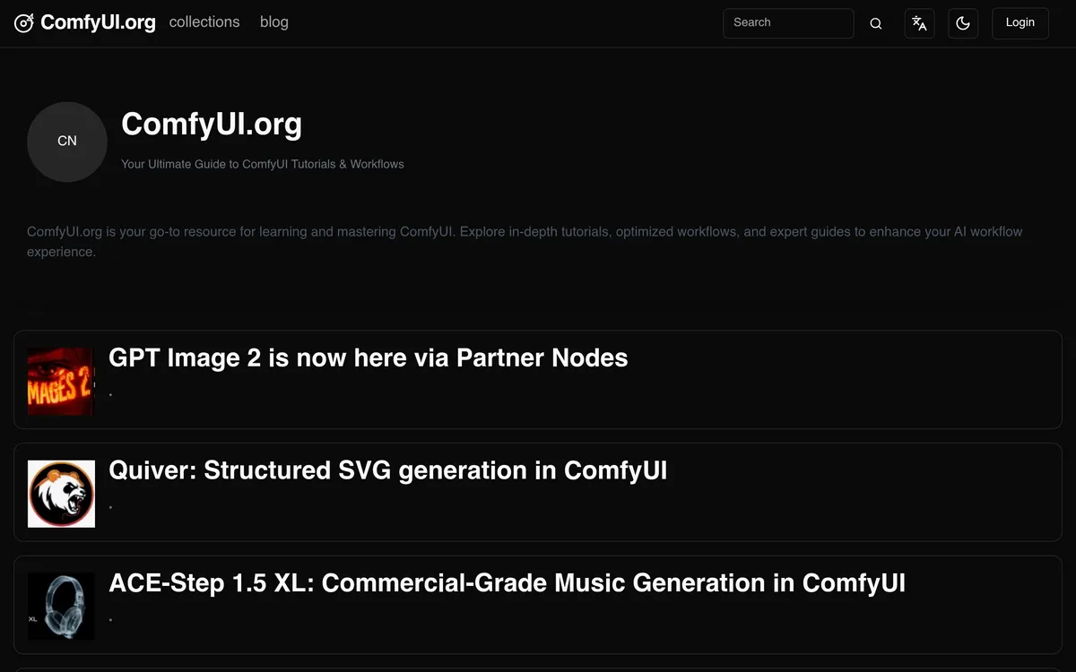 ComfyUI.org serves as a central hub for learning how to effectively use ComfyUI. The platform offers an extensive collection of tutorials and optimized workflows aimed at enhancing users' experience with AI workflows. Users can dive into expert guides that cover a variety of topics, ensuring that they can utilize ComfyUI to its fullest potential. Whether one is new to ComfyUI or looking to refine their skills, the resources available cater to all levels of expertise.