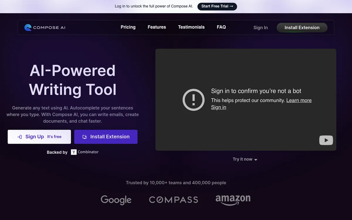 Compose AI is a personal AI writing assistant that accelerates writing and decreases typing time.
