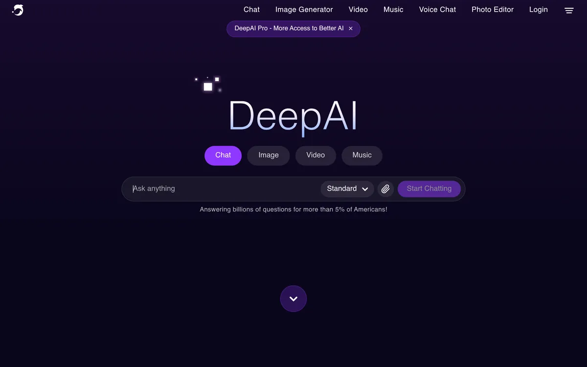 DeepAI is a creative AI platform for generating images, videos, and music.