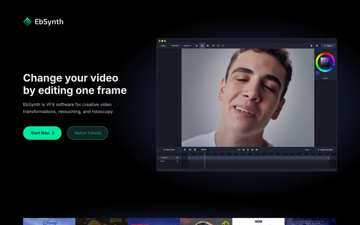 EbSynth is VFX software for creative video transformations and retouching.