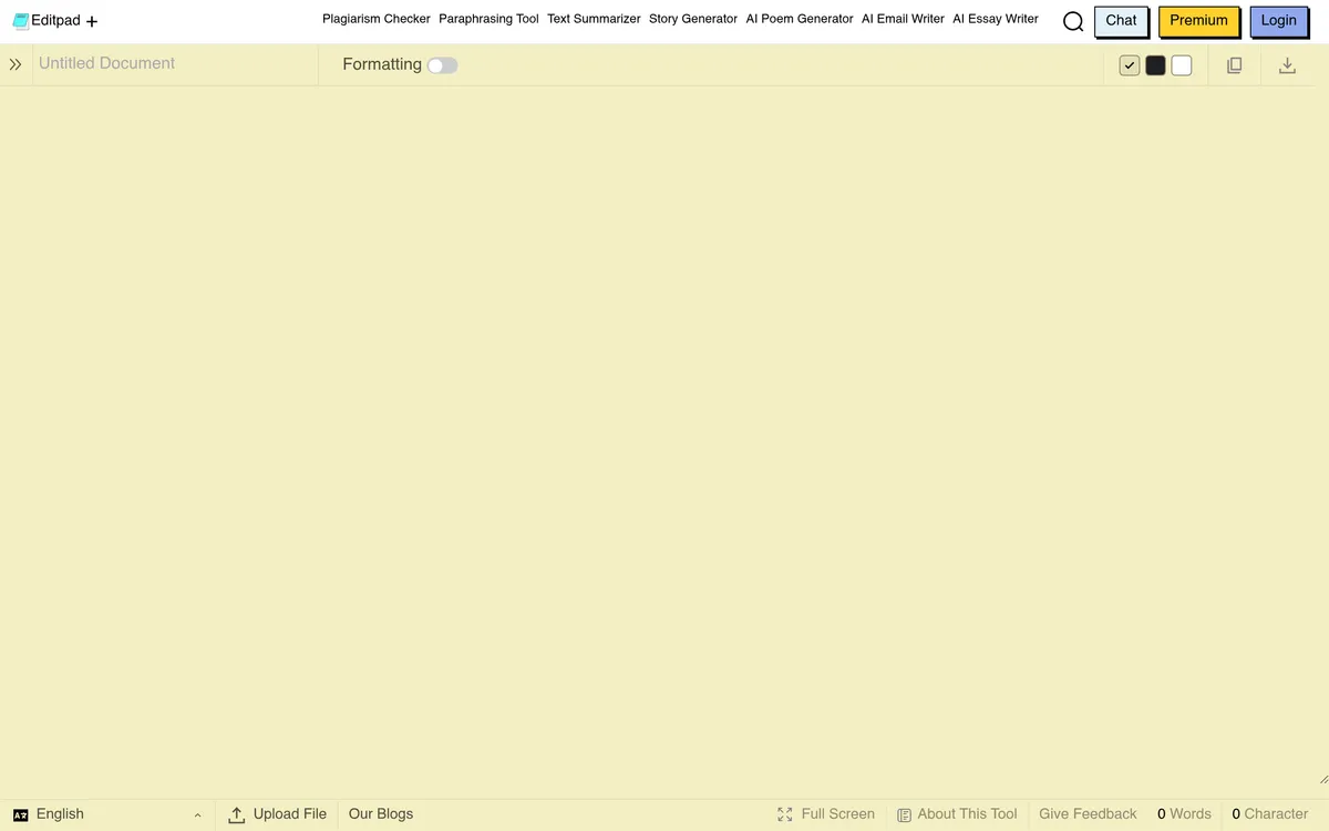 Editpad is an online notepad designed for editing plain text, functioning similarly to Microsoft’s text editor. Users can create notes online, copy-paste text, and save it for later use. The platform supports file uploads from various sources including Google Drive and One Drive. Advanced features include word and character counting, plagiarism and grammar checking, as well as tools for paraphrasing and summarizing text. It also offers capabilities for essay writing, thesis generation, and story creation, making it suitable for students and writers. Editpad can be accessed without installation and includes options to download and share notes securely.