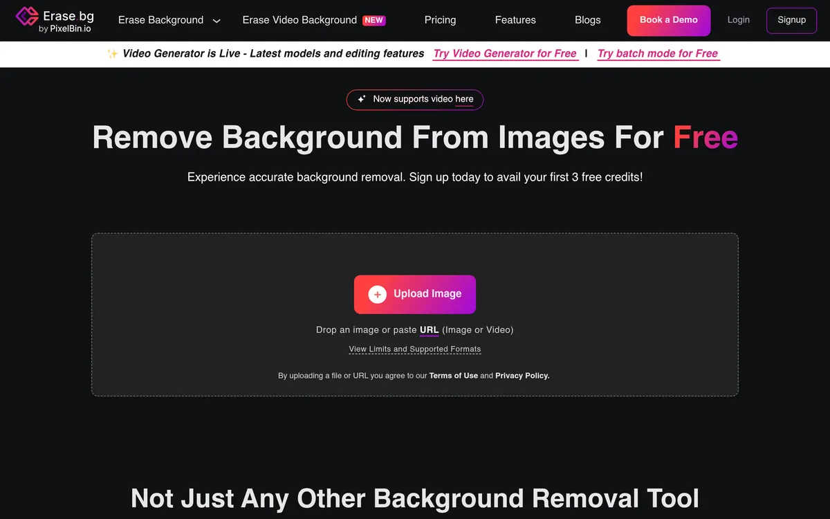 Erase.bg is a free online tool that allows users to remove backgrounds from high-definition images and videos. Users can upload images in various formats such as PNG, JPEG, and GIF, and can also handle videos of up to 30 seconds. The service offers three free credits for new users, allowing them to try out the tool without upfront costs. The platform supports bulk transformations, making it efficient for users needing to process multiple images quickly. Additionally, Erase.bg provides an API for seamless integration into existing workflows, enhancing productivity across different sectors such as e-commerce, marketing, and media. Whether for individual use or enterprise solutions, Erase.bg aims to deliver precise and fast background removal.