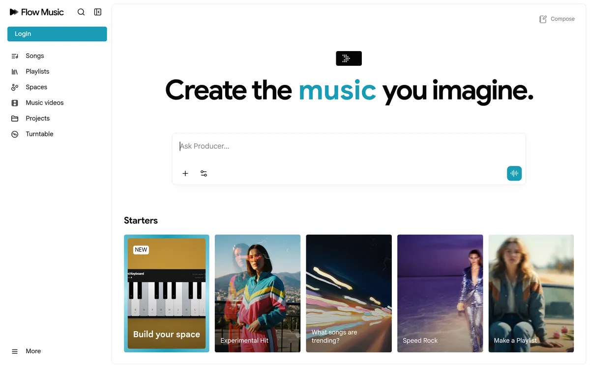 Flow Music combines tools for music creation, offering a platform where users can produce songs, build custom instruments, and even create AI-generated music videos. It features plugins, audio effects, and a personalized experience as it learns users’ musical styles. With its latest frontier music model, Lyria 3, users can chat with an AI producer to develop full-length songs. Additionally, the platform allows the creation of detailed music videos through its Veo model, highlighting a hands-on approach to artistic expression.