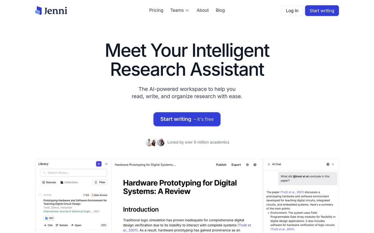 Jenni assists in writing, citing, and editing research with AI-powered tools.
