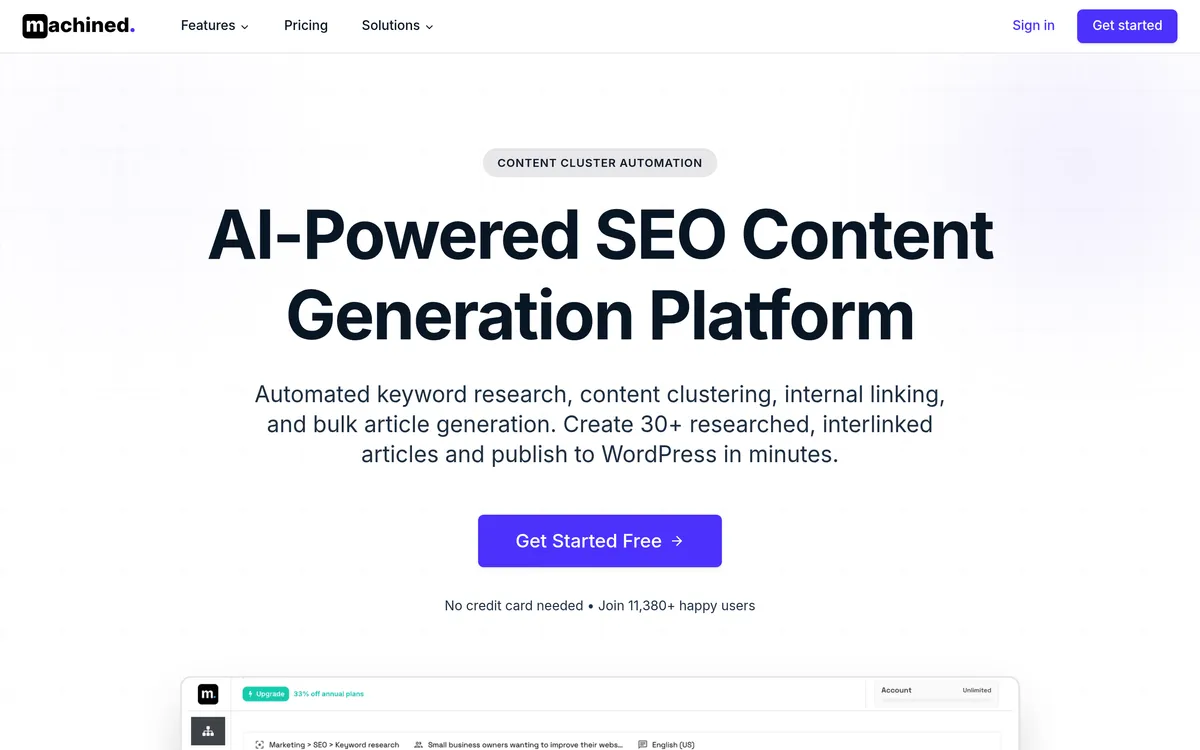 Machined is a content cluster automation platform designed for SEO, leveraging AI to streamline various content creation processes. It automates keyword research, content clustering, and internal linking, enabling the generation of 30+ researched articles ready for publication in mere minutes. With features like AI-generated citations and direct CMS publishing to platforms like WordPress, users can quickly create and publish high-quality, interconnected content clusters. The platform is aimed at enhancing productivity for local businesses, marketing agencies, and SaaS startups, eliminating the tediousness of traditional content workflows.