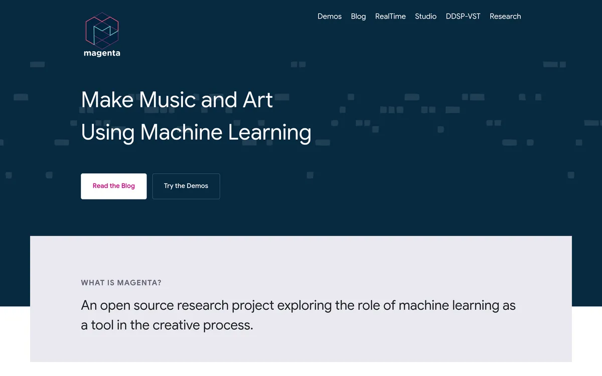 Magenta is an open source research project that investigates how machine learning can be a tool in the creative process. It offers various applications and tools that allow users to create music, art, and more using advanced machine learning techniques. The project includes features such as demos, a blog, and tools for real-time music generation. Notable applications like The Infinite Crate DAW plugin and Lyria Camera highlight its focus on integrating music with different forms of media. The platform encourages developers to participate and explore creativity through technology.