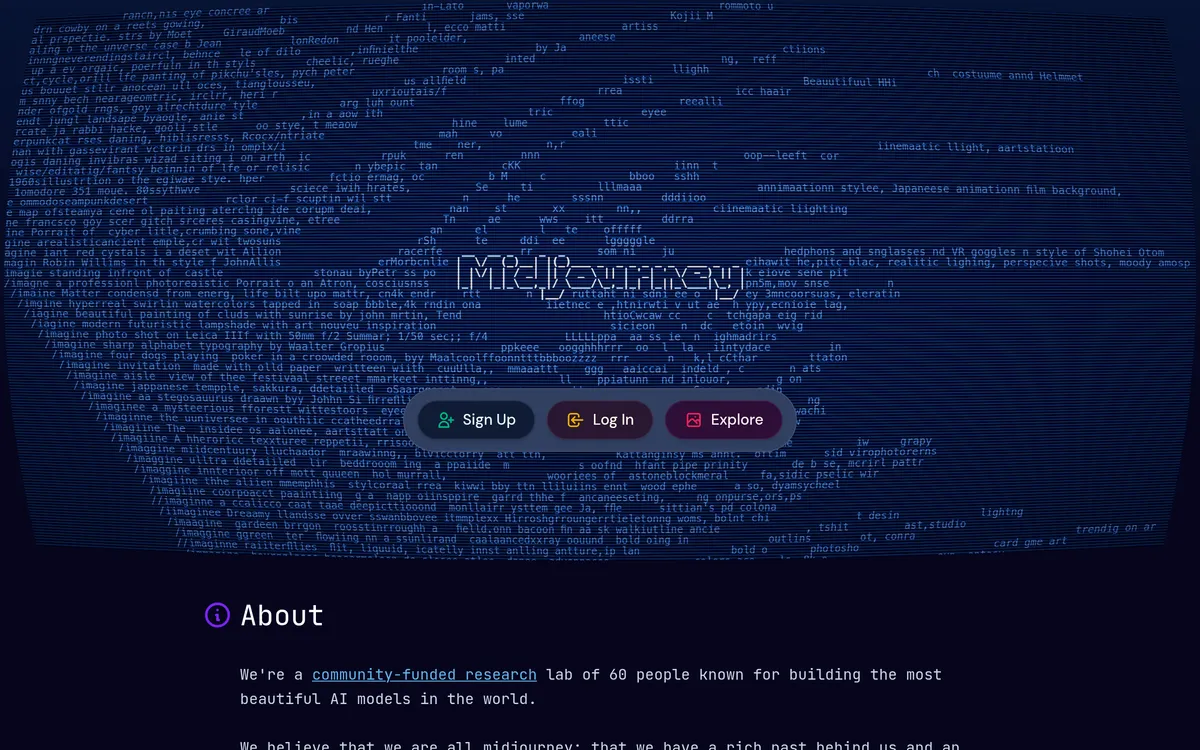 Midjourney is a company comprised of a dedicated team of 60 individuals who specialize in building sophisticated AI models. They strive to explore the intersection of imagination, coordination, and human experience through upcoming projects that aim to highlight beauty and foster human flourishing. The organization emphasizes the collective journey of humanity, encouraging reflection on our past and potential future. With a focus on ambitious projects, Midjourney aims to help shape a humane future that resonates with all. The company is also actively hiring to expand its dynamic, distributed team, inviting others to join in their mission to amplify the human spirit.