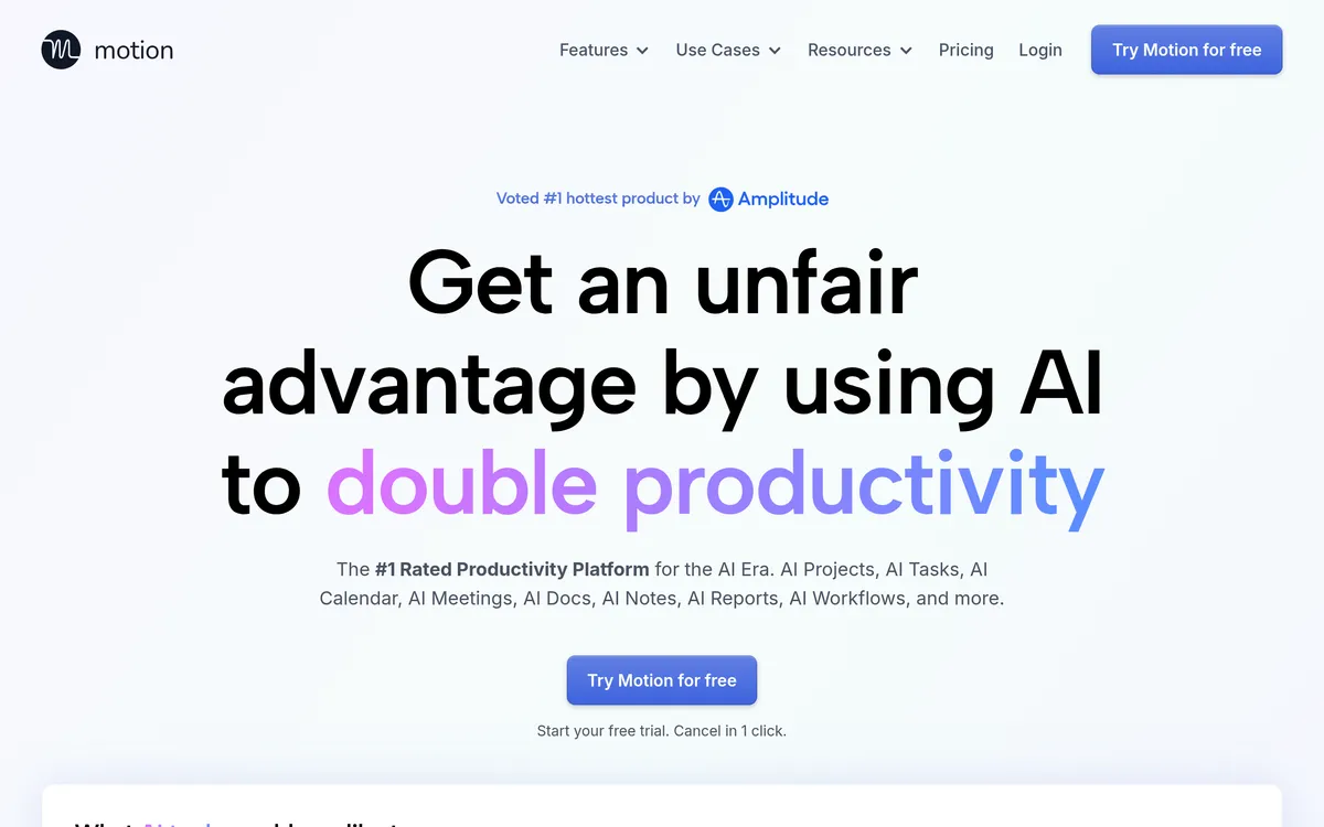Motion helps individuals and teams improve productivity using AI-driven tools.