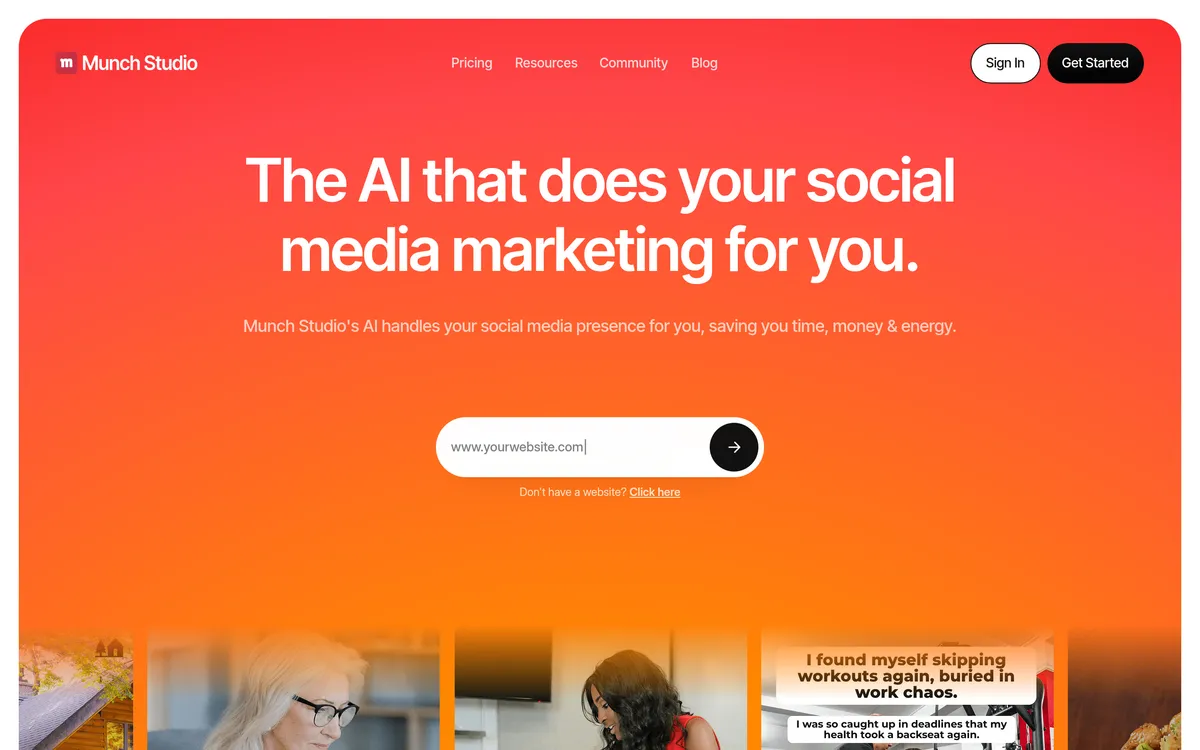 Munch Studio is an AI-powered application designed to manage social media marketing for businesses. It simplifies the process by automatically creating and handling social media posts, thus saving users time and effort. Users can simply provide their business website, and the AI takes over the marketing tasks, allowing businesses to focus on other priorities without the hassle of constant social media management.