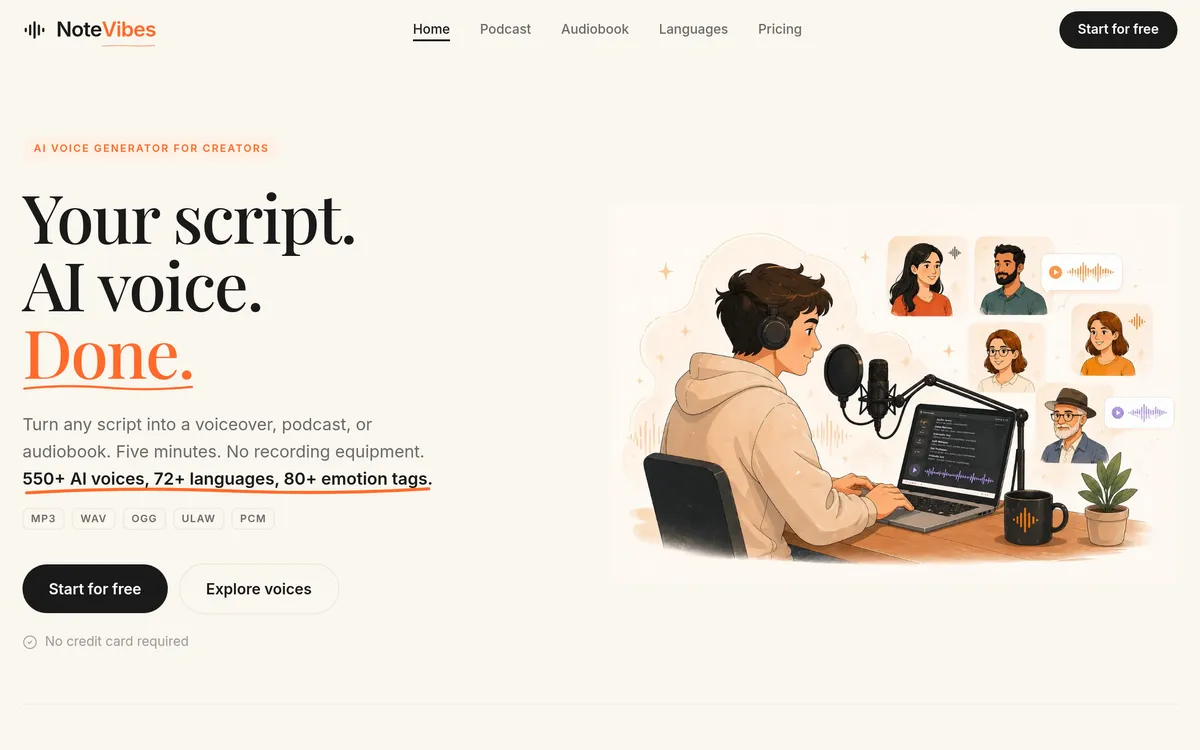 Notevibes turns scripts into realistic voiceovers in multiple languages and styles.