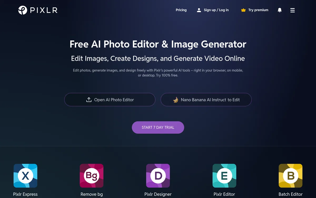 Pixlr provides an online platform for editing images, generating designs, and utilizing AI tools easily.