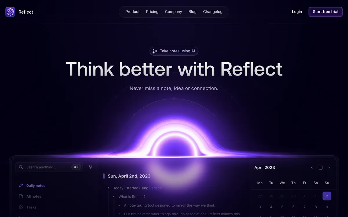 Reflect helps users take notes using AI and organize their thoughts efficiently.