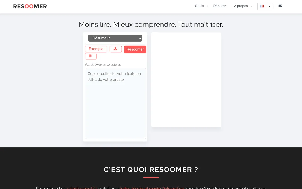 Resoomer is a free cognitive studio for processing, studying, and managing information. Users can import any document irrespective of its size to summarize, listen, rephrase, translate, paraphrase, synonymize, spell-check, and export. Each result can be easily used in other tools with just one click, ensuring a seamless experience. No account is required and there are no character limits. The platform supports multiple languages and provides a single workspace to shift from passive reading to full mastery of information. Resoomer caters to various user needs: it helps individuals with ADHD focus on condensed text, assists dyslexic users by simplifying and reading text aloud, and boosts productivity for students by summarizing coursework and Wikipedia pages. It also aids teachers in identifying key ideas for their lessons, journalists looking for simplified information, writers focusing on relevant facts, and anyone who needs to quickly summarize digital documents.