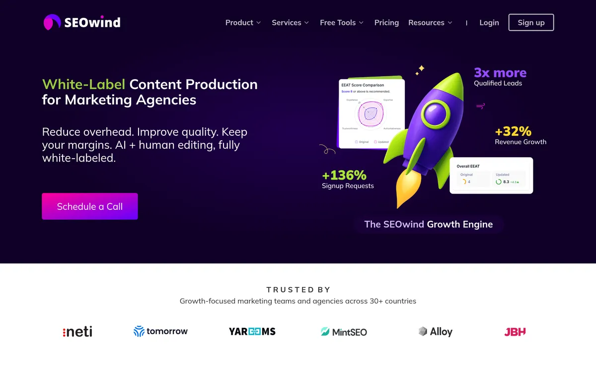 SEOwind provides white-label content production services optimized for marketing agencies.