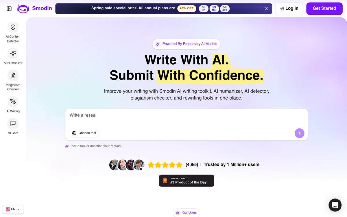 Smodin features a suite of AI writing tools designed to enhance the writing process for students and professionals alike. Users can make use of several tools such as the AI humanizer, plagiarism checker, and content detector—all in one platform. With a strong focus on speed and accuracy, Smodin processes text quickly while maintaining a high level of reliability, boasting a 99.8% accuracy rate. Trusted by over 1 million users, it has become a favorite among those looking for a comprehensive writing assistant.