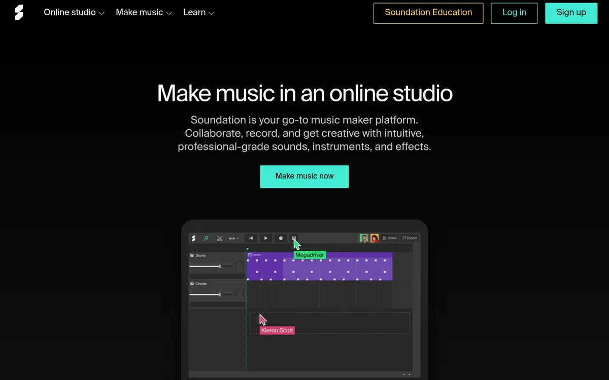 Soundation is a cloud-based music production studio that allows users to collaborate, record, and create music using professional-quality sounds, instruments, and effects. The platform supports real-time collaboration, letting users invite others to work on music projects together. With a wide selection of virtual instruments, audio effects, and a sound library, Soundation caters to both novice and experienced musicians. Users can also find educational resources to improve their music production skills and explore various genres of music creation.