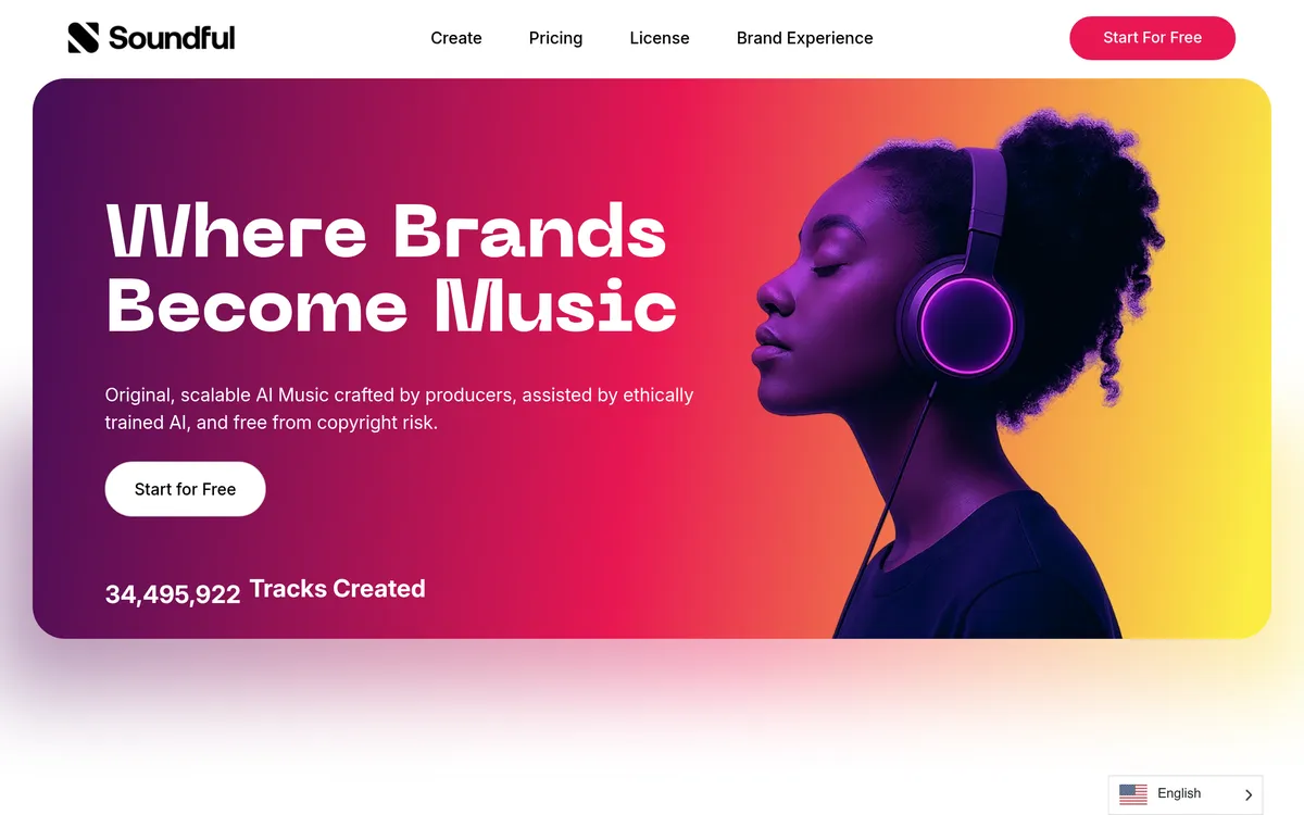 Soundful offers AI-generated music tailored for brands, ensuring a unique sonic identity free from copyright risk.