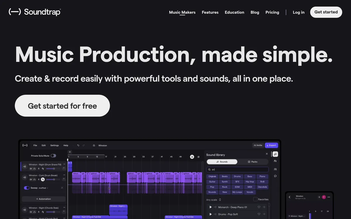 Soundtrap is an online music and beat maker that provides users with a platform to create, record, and collaborate on music easily. It offers powerful mixing and vocal tools, virtual instruments, and a large library of royalty-free sounds. Users can access thousands of loops, samples, and one-shots, curated and mixed by professional producers. The platform excels in collaboration, allowing musicians to work together in real-time from anywhere, using any device. New sound packs are released every two weeks, featuring genres like Phonk, Drill, Lo-Fi, and more, ensuring a constantly updated library for creators.