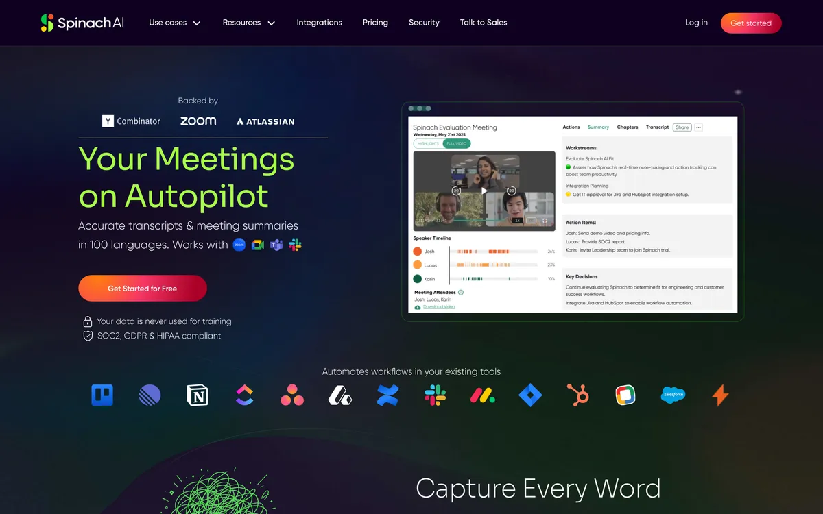 Spinach AI provides accurate transcripts and meeting summaries in 100 languages, effectively automating workflow processes within existing tools. It caters to a range of use cases, including Scrum Master, product management, engineering, marketing, and more. The platform is scalable across different sectors like finance, HR, and legal compliance, making it a versatile solution for businesses of all sizes. It emphasizes data privacy, ensuring user data is never used for training and maintaining compliance with SOC2, GDPR, and HIPAA standards.
