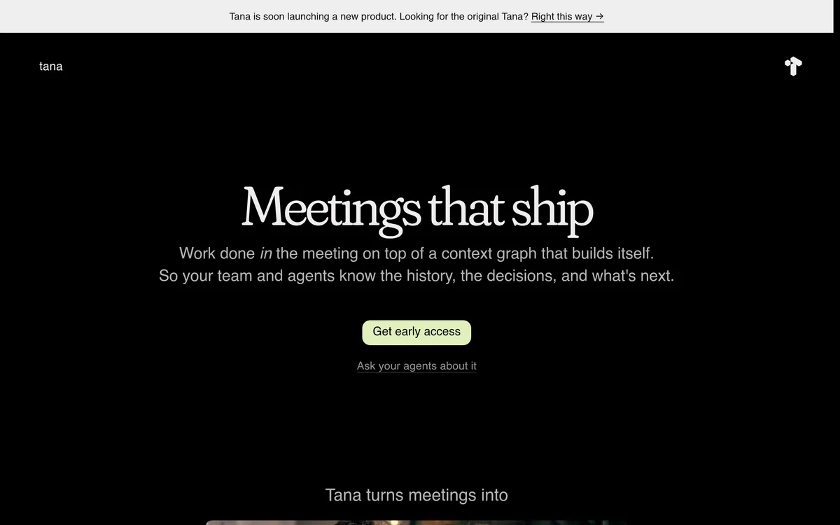 Tana provides an agentic meeting platform that turns discussions into actionable work in real-time.