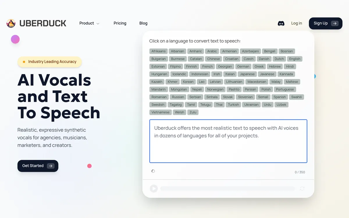 Uberduck provides AI-powered text-to-speech and vocal generation tools.