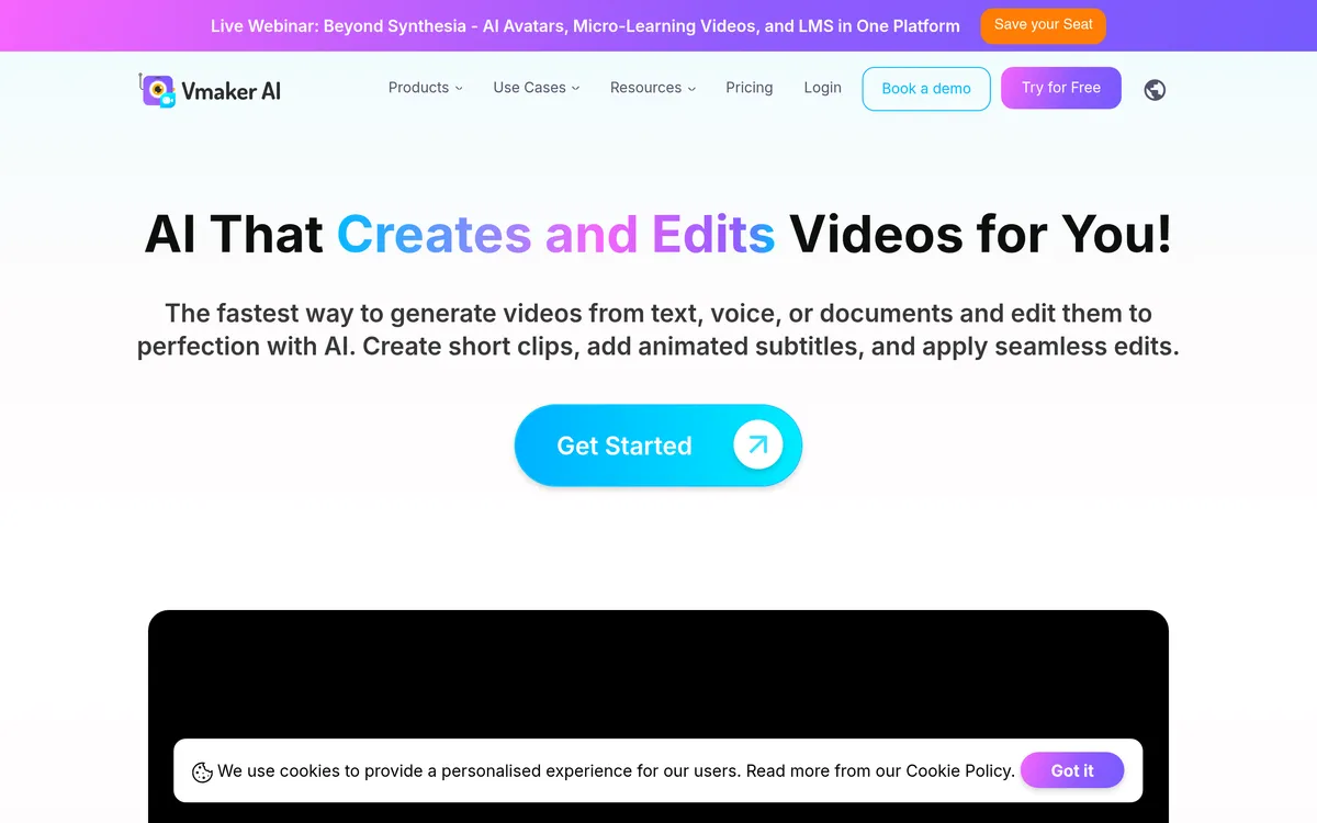 Vmaker AI allows users to create and edit videos quickly using AI tools.