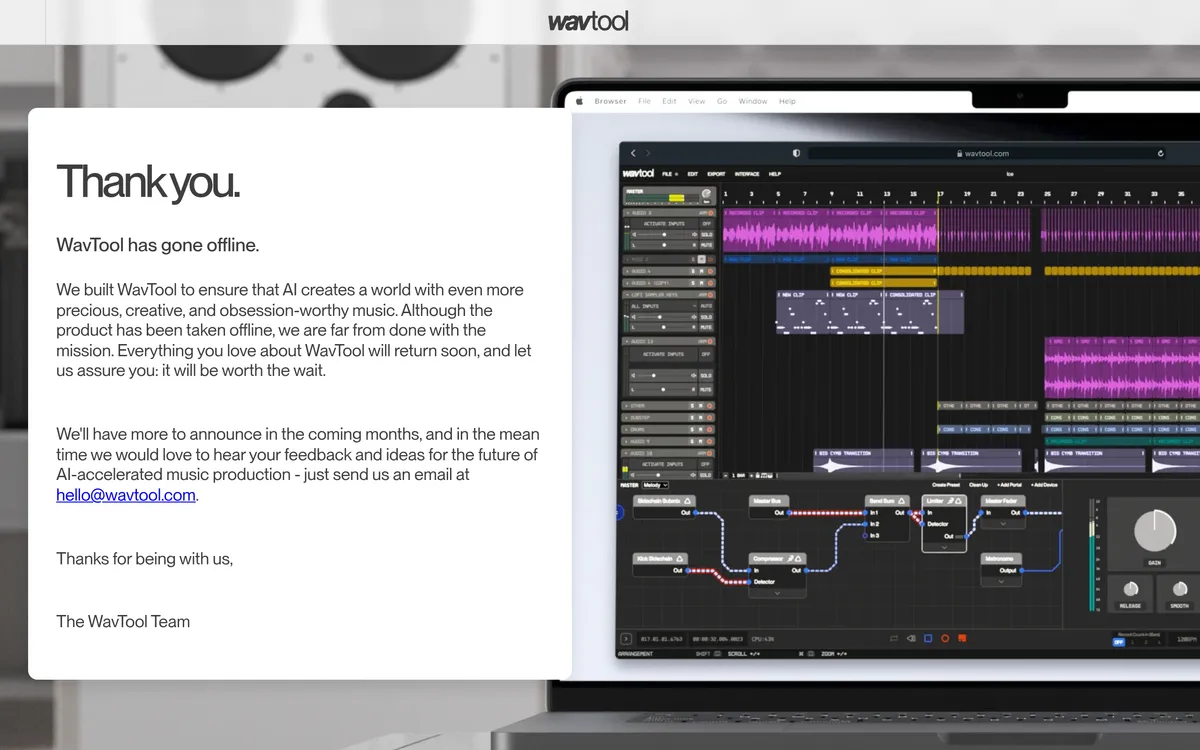 WavTool was built to facilitate the creation of unique and engaging music through AI technology. Although the product has gone offline, the team expresses their commitment to returning stronger with better features and offerings soon. They are actively encouraging feedback and ideas for future developments, indicating a customer-centric approach in their mission to innovate music creation further. Users are urged to stay tuned for upcoming announcements regarding the platform's revival.