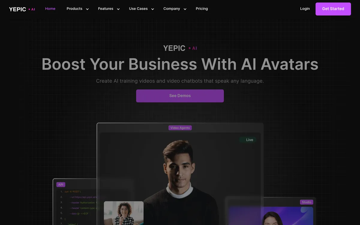 Yepic AI provides an innovative platform for creating engaging AI training videos and video chatbots that can communicate in various languages. It is designed to enhance user interaction while automating video content creation for businesses. The app features customizable avatars, talking photos, and an API for seamless integration into existing workflows. With real-time voice translations, it serves a wide range of sectors, including education, healthcare, and banking, making communication more efficient and effective. Used by over 20,000 companies, Yepic AI is trusted to deliver dynamic video content that can boost customer engagement and operational efficiency.